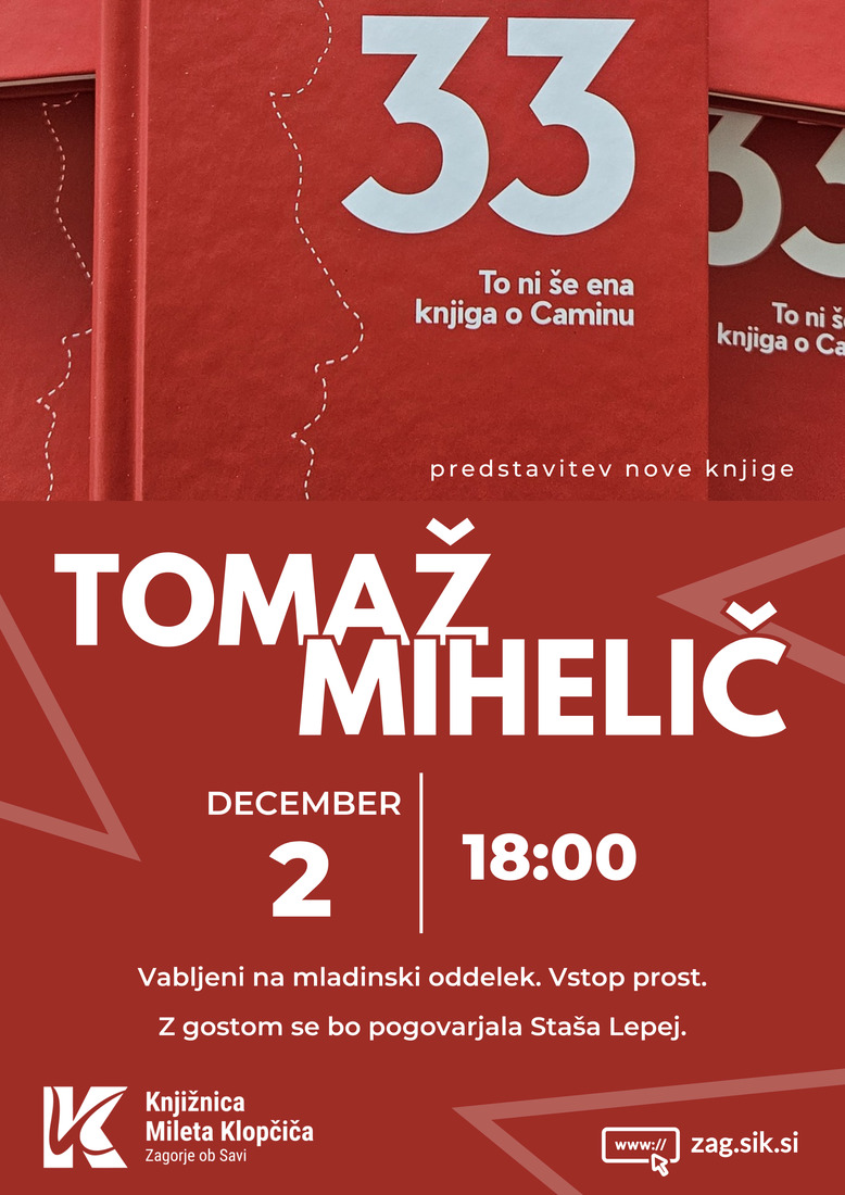 Vabljeni na predstavitev knjige 33: To ni še ena knjiga o Caminu Tomaža Miheliča, ki je svojo izkušnjo s slovito romarsko potjo strnil v 33 poglavij. Vstop prost.